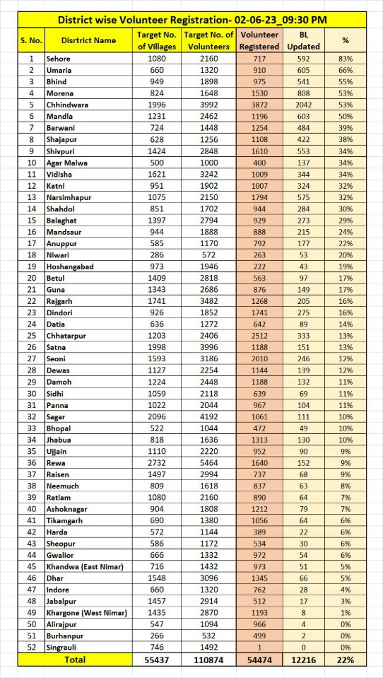3 दिन पूर्व तक संभाग में अंतिम पायदान पर स्थित जिला कलेक्टर श्री प्रसाद की कुशल रणनीति से अब संभाग में अव्वल स्थान पर आ पहुंचा है। इस विशेष शिविर के लिए 1902 वालेंटियर का लक्ष्य निर्धारित किया गया था। जिसमें से वर्तमान में 1007 वोलेंटियर पंजीकृत हो चुके हैं। कलेक्टर श्री प्रसाद ने इस पुनीत अभियान में शामिल होकर जिले की शैक्षणिक स्तर में सुधार लाने के लिए बड़ी संख्या में स्वयं सेवकों से इसमें जुड़कर अपना बहुमूल्य योगदान देने अपील की है।