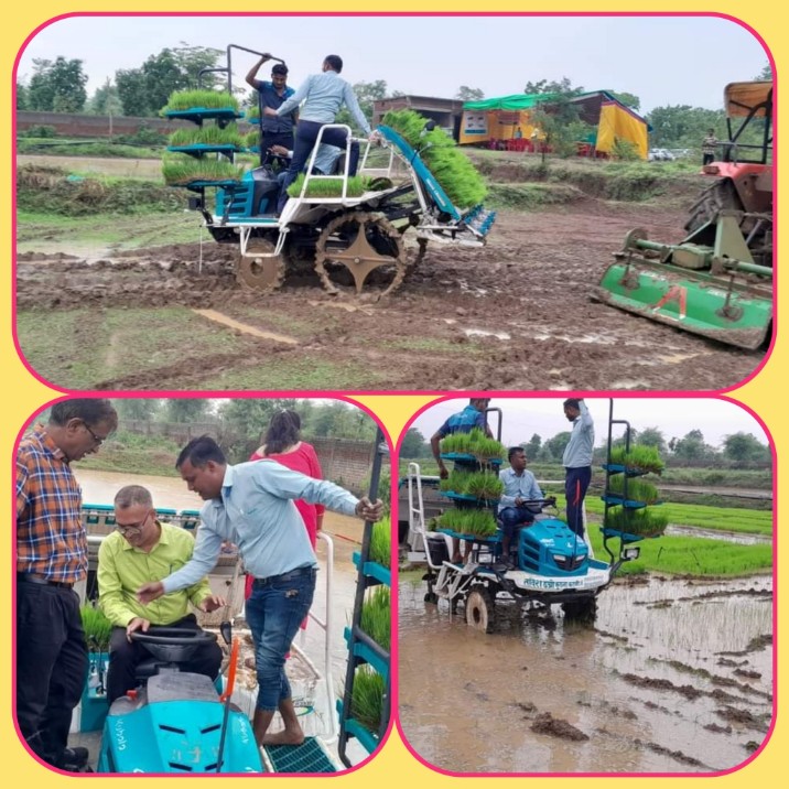 इस मशीन द्वारा आज दिनांक 7 जुलाई 2023 को कृषक के खेत में धान की रोपाई करने का प्रदर्शन किया गया। इस प्रदर्शन को देखने हेतु गाँव के अन्य किसान भी उपस्थित रहे। मशीन से धान की रोपाई करने के संबंध में तकनीकी ज्ञान देने हेतु इस मशीन की निर्माता कंपनी कबोटा के प्रतिनिधी भी रहे। कृषकों को मशीन के संबंध में तकनीकी ज्ञान दिया गया एवं नर्सरी लगाने की विधि तथा मशीन को चलाकर भी कृषकों को दिखाया गया।