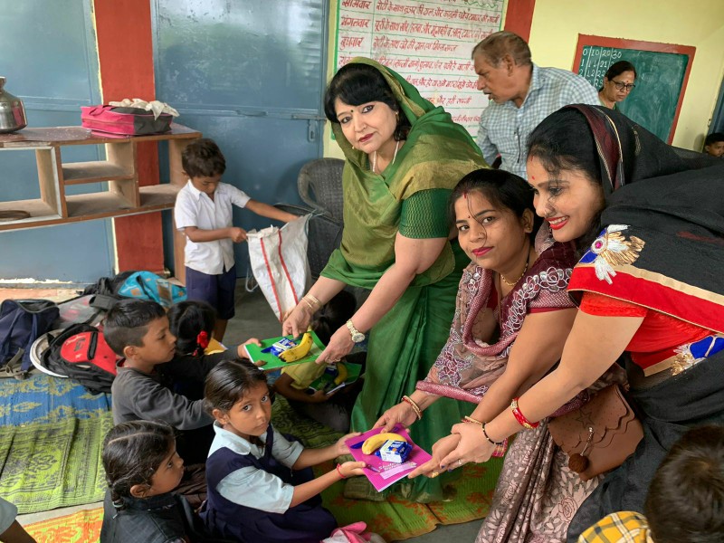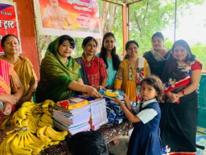 राष्ट्रीय महिला जागृति मंच एंव मानव अधिकार आयोग सहकार ट्रस्ट के सदस्यों ने बीटीआई स्कूल के बच्चों को स्टेशनरी सहित फल वितरित किए