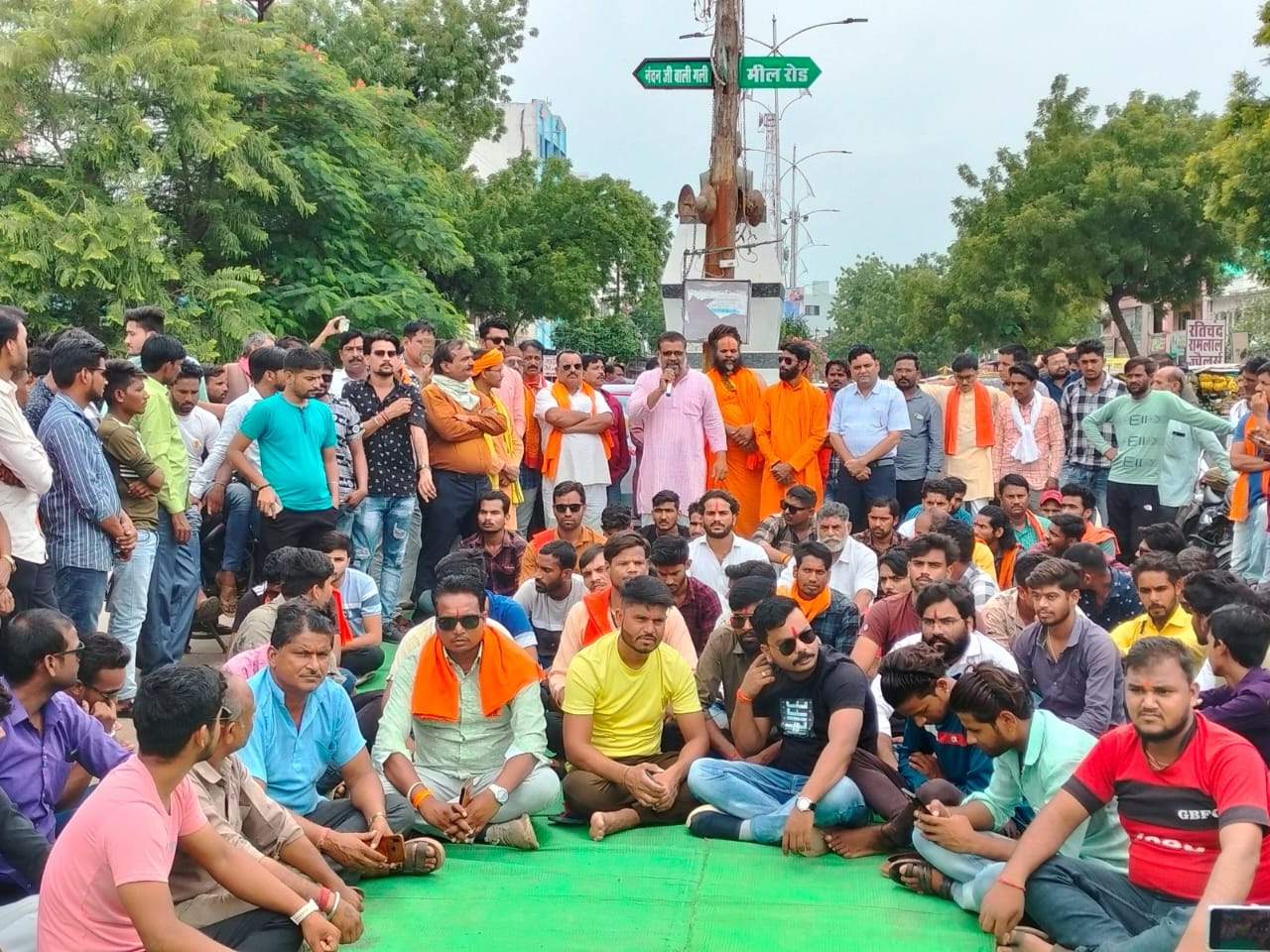 हरियाणा के मेवात (नूंह) में विहिप-बजरंगदल द्वारा निकाली जा रही ब्रजमंडल यात्रा पर जिहादियों द्वारा किये गये प्राणघातक हमले के विरोध में बुधवार को स्थानीय बजरंग दल कार्यकर्ताओं ने नेहरू चौक पर धरना प्रदर्शन कर मजहबी आतंक का विरोध किया।