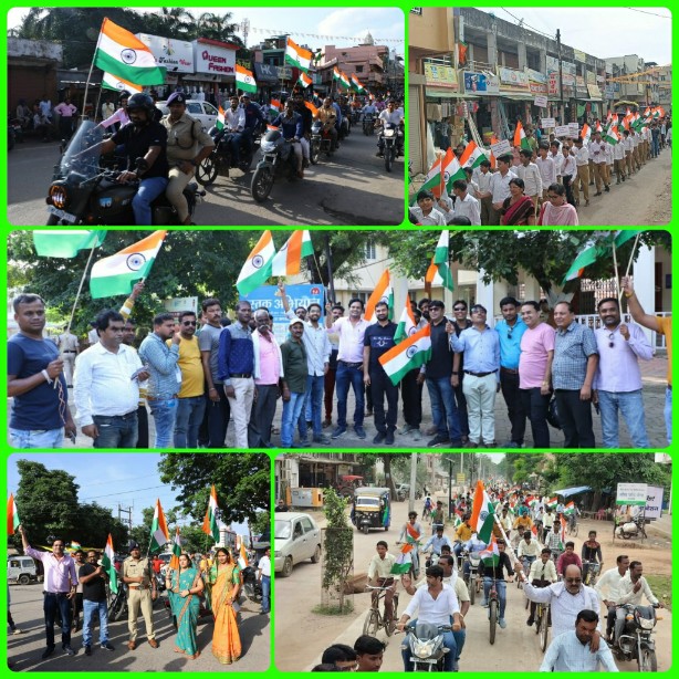 नर्मदापुरम। आजादी के अमृत महोत्सव के तहत देश भर में राष्ट्रभक्ति की भावना जागृत करने अपने -अपने घरों में राष्ट्रीय ध्वज फहराने के लिए जागरूक करने तथा राष्ट्रीय ध्वज के बारे में जागरूकता उत्पन्न करने के लिए जिले में 13 अगस्त से 15 अगस्त तक हर घर तिरंगा अभियान जारी रहेगा। जिसकी शुरुआत रविवार से हो रही है। शनिवार से जागरूकता के कार्यक्रम शुरू हो गए हैं। इस अवधि में जिले के प्रत्येक घर में राष्ट्रीय ध्वज फहराया जाएगा। कलेक्टर नीरज कुमार सिंह के निर्देशन में जागरूकता अभियान शुरू हो गया है। जिसके तहत शनिवार को जिले भर में जागरूकता रैली का आयोजन किया गया। जिसमें युवाओं, बच्चों एवं महिलाओं ने बढ़ चढ़कर हिस्सा लिया।