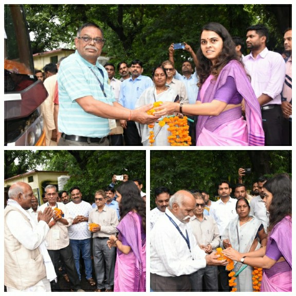 कलेक्टर सुश्री ऋजु बाफ़ना ने तीर्थयात्रियों को यात्रा की शुभकामनाएँ देकर रवाना किया।