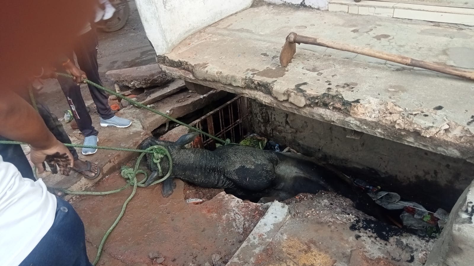 कटनी के गाटरघाट नदी के ऊपर से गुजरी रेल लाइन से एक बैल नीचे नदी में आ गिरा। दूसरी घटना में कटनी मुख्य डाकघर के सामने जैन धर्मशाला के बाहर एक अन्य बैल नाले में गिर गया। दोनों घटना बीती रात की बताई गई है।नाले में गिरे बैल को नगर निगम कर्मचारियों ने रेस्क्यू कर सुरक्षित तरीके से बाहर निकाल लिया। जबकि नदी में गिरा बैल पानी में ही पड़ा हुआ है। क्षेत्र वासियों ने नगर निगम से नदी में गिरे बैल को हटाने की मांग की है। नाले में गिरे बैल को बाहर निकालने के लिए नगर निगम कर्मचारियों को घंटों मशक्कत करनी पड़ी। इस दौरान आसपास काफी भीड़ जमा रही।