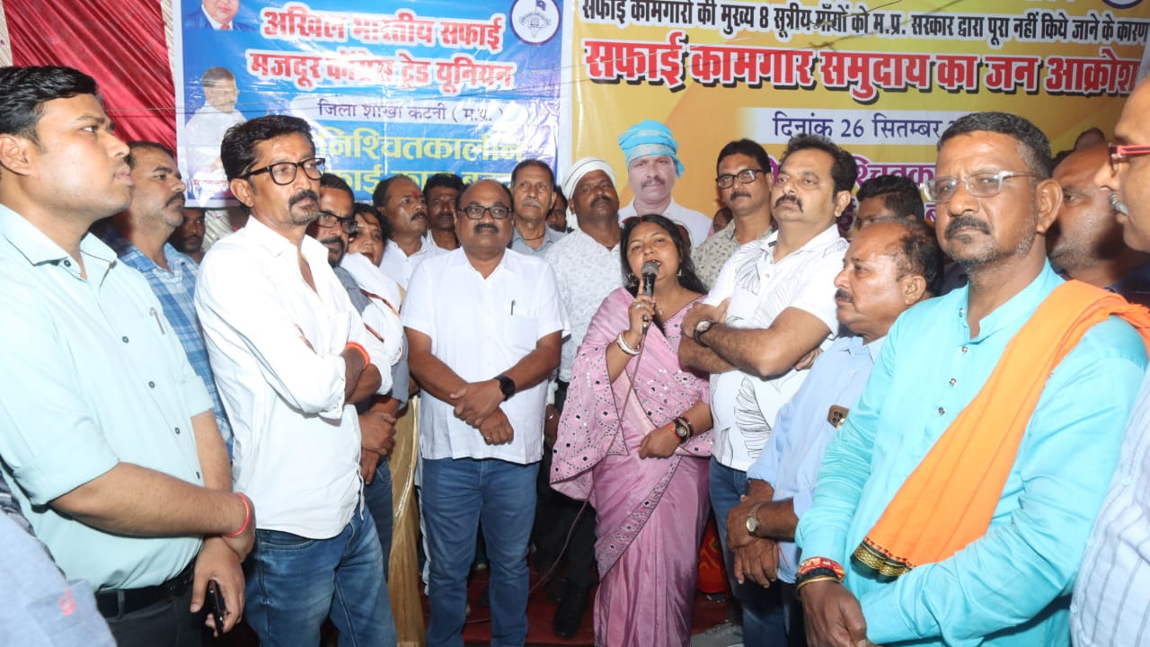 कटनी।नगर पालिका निगम सफाई मित्रों द्वारा भारतीय सफाई मजदूर कांग्रेस ट्रेड यूनियन प्रांतीय शाखा के आव्हान पर विगत 26 सितंबर से सफाई कर्मचारियों द्वारा हड़ताल की गई है।