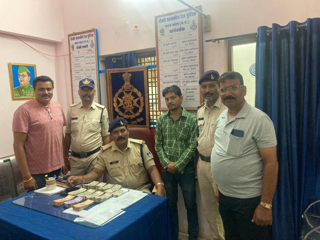 रेलवे स्टेशन मदन महल में चेकिंग के दौरान संदिग्ध युवक के पास से जीआरपी ने बरामद किए 500000 रूपये