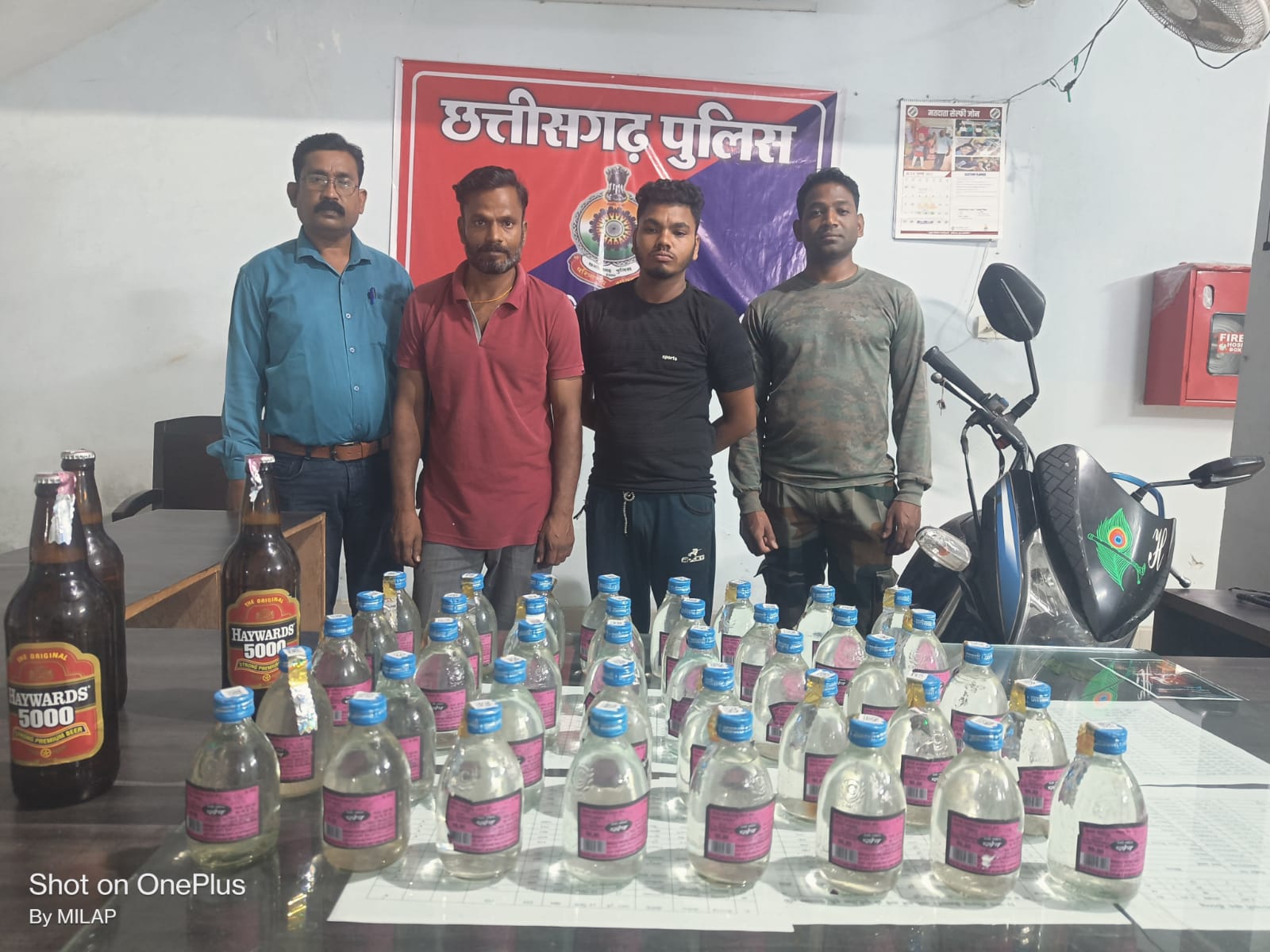 डोगरगढ़ पुलिस को सूचना प्राप्त हुई कि दो व्यक्ति मोटरसाइकिल पर अवैध रूप से शराब लेकर ग्राम कटली के मार्ग से होते हुये कलकसा की ओर जा रहे कि सुचना पर , थाना प्रभारी निरीक्षक भरत बरेठ के नेतृत्व में ग्राम कलकसा रोड के सामने चेक पोस्ट लगाकर आने जाने वाहनो की चेकिंग किया जा रहा था। इस दौरान चेकिंग पर। एक मोटरसाइकिल को रोक कर पुलिस द्वारा चेक किया गया जिसमें 02 व्यक्ति मिले जिसे पूछताछ करने पर अपना नाम अनिल राव एवं साहिल वर्मा वाहन में रखे थैला को चेक करने पर 40 पौवा देशी शराब व 04 बीयर जिस संबंध में पूछताछ करने पर आरोपीयों द्वारा वैध दस्तावेज प्रस्तुत नही किया गया। आरोपीयों का उक्त कृत्य आबकारी एक्ट की परिधि में आने पर आरोपीयों के विरूध्द थाना डोंगरगढ थाना में अपराध धारा 34 (2) आबकारी एक्ट का अपराध पंजीबध्द किया गया मामले में आरोपीगण को गिरफ्तार कर न्यायालय भेजा गया जंहा से जेल वारंट प्राप्त कर जेल भेजा गया।