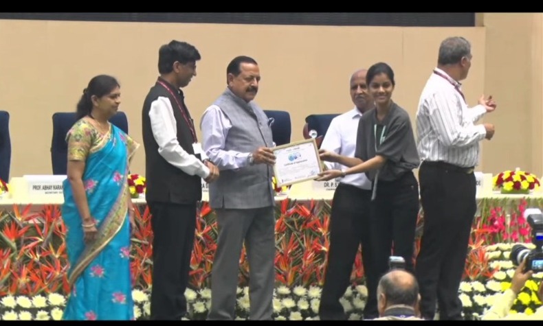 नर्मदापुरम। पं. रामलाल शर्मा विद्यालय की छात्रा कु. सुप्रिया मिश्रा का इंस्पायर अवार्ड मानक योजना की राष्ट्रीय विज्ञान प्रदर्शनी में टाॅप 60 में चयन हुआ है। नई दिल्ली के इंदिरा गांधी इंडोर स्टेडियम में इंस्पायर अवार्ड मानक योजना की राष्ट्रीय विज्ञान प्रदर्शनी 9 से 11 अक्टूम्बर तक आयोजित की गई। जिसमें मध्यप्रदेश से राज्य स्तर पर 13 विद्यार्थी एवं देश भर के 420 विद्यार्थियों ने इस प्रतियोगिता में हिस्सा लिया। 11 अक्टूबर को विज्ञान भवन में आयोजित 10 वां राष्ट्रीय प्रदर्शनी एवं प्रोजेक्ट प्रतियोगिता के समापन केन्द्रीय राज्य मंत्री डा. जितेन्द्र सिंह की उपस्थिति में हुआ। समापन समारोह में पूरे देश से 420 विद्यार्थियों में चयनित होकर आये टाॅप 60 का चयन ज्यूरी द्वारा किया गया। कु. सुप्रिया मिश्रा अब अपने प्रोटोटापाइप के साथ अंतर्राष्ट्रीय स्तर पर भाग लेने चयनित 60 विद्यार्थियों के साथ जायेंगी। नर्मदापुरम संभाग से कु. सुप्रिया मिश्रा का चयन टाॅप 60 में होने पर विद्यालय संचालक अरूण शर्मा, प्राचार्य सुधीर मिश्रा, गाईड टीचर रमा रघुवंशी सहित शिक्षकों ने बधाईयां दी हैं।