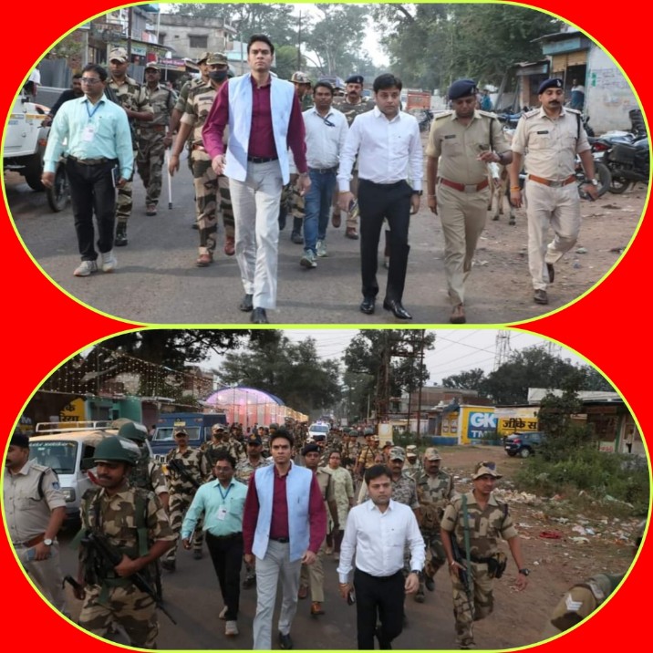 कटनी – विधानसभा निर्वाचन के मद्देनजर ग्रामीण एवं शहरी क्षेत्रों में भयमुक्त वातावरण उपलब्ध करानें तथा सुरक्षा व्यवस्था को दृष्टिगत रखते हुए शनिवार को कलेक्टर एवं जिला निर्वाचन अधिकारी श्री अवि प्रसाद एवं पुलिस अधीक्षक अभिजीत कुमार रंजन की उपस्थिति में स्लीमनाबाद स्थित एस.डी.ओपी कार्यालय से मेन बाजार होते हुए बहोरीबंद रोड से पान उमरिया तिराहा तक पुलिस विभाग के दल-बल के साथ फ्लैग मार्च निकाला गया है।