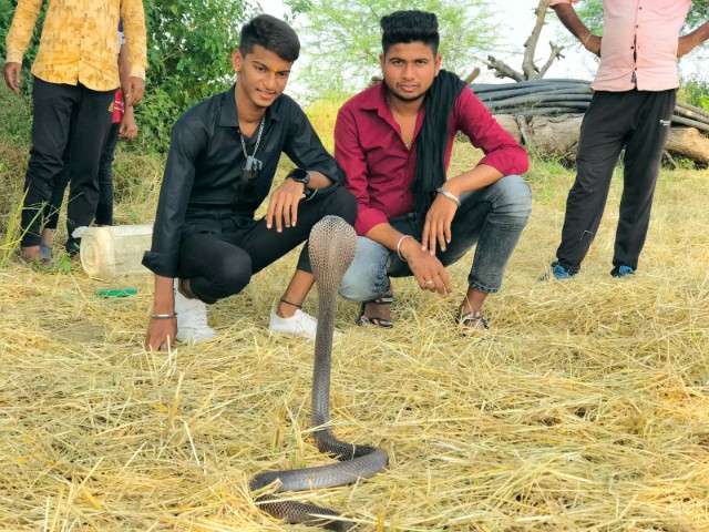 करीब 4 से 5 फीट लंबा कोबरा प्रजाति का सांप 20 फीट गहरे कुएं में गिर गया था जिसे सर्प मित्र निकाला