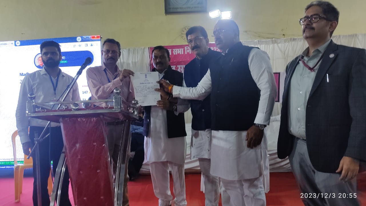 हरदा 3 दिसम्बर 2023/ विधानसभा निर्वाचन के लिये मतगणना पॉलिटेक्निक कॉलेज में सम्पन्न हुई। मतगणना के बाद हरदा विधानसभा क्षेत्र से भारतीय राष्ट्रीय कांग्रेस के अभ्यर्थी डॉ. आर.के. दोगने तथा टिमरनी विधानसभा क्षेत्र से भारतीय राष्ट्रीय कांग्रेस के अभ्यर्थी अभिजीत शाह निर्वाचित घोषित किये गये। रिटर्निंग अधिकारी हरदा आशीष खरे ने विजेता अभ्यर्थी डॉ. दोगने को निर्वाचित होने संबंधी प्रमाण-पत्र प्रदान किया। इसी तरह टिमरनी विधानसभा क्षेत्र के रिटर्निंग अधिकारी महेश बड़ोले ने विजेता अभ्यर्थी अभिजीत शाह को निर्वाचित होने संबंधी प्रमाण-पत्र प्रदान किया। इस दौरान प्रेक्षक हरदा हनीश छाबड़ा, प्रेक्षक टिमरनी नरिन्दर सिंह बाली, कलेक्टर ऋषि गर्ग, अपर कलेक्टर एवं उप जिला निर्वाचन अधिकारी डॉ. नागार्जुन बी गौड़ा, जिला पंचायत के मुख्य कार्यपालन अधिकारी रोहित सिसोनिया सहित अन्य अधिकारी भी मौजूद थे।