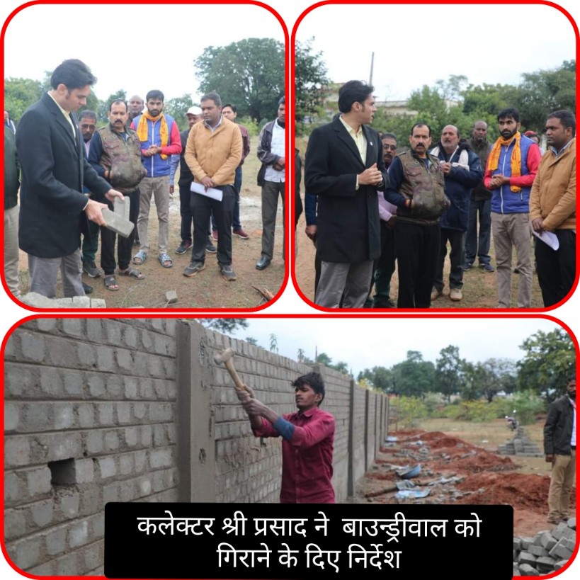 कलेक्टर श्री प्रसाद ने मौके पर पहुंचकर सीमेंट निर्मित ईट की गुणवत्ता परखने उन्हे पांच फिट ऊपर से स्वयं जमीन पर गिराकर ईंट की गुणवत्ता को परखा। ईट जमीन पर पहुंचते ही टूट गई और प्रथम दृष्टया ही गुणवत्ताहीन पाई गई। इस पर कलेक्टर श्री प्रसाद ने पी.आई.यू के स्थानीय उपयंत्री अंकित राठोर द्वारा कार्य के नियमित पर्यवेक्षण न किये जाने पर गहन नाराजगी व्यक्त करते हुए निर्माण कार्य के सतत् निगरानी और पर्यवेक्षण के निर्देश दिए। उन्होंने हिदायत दी की निर्माण कार्य की गुणवत्ता से समझौता बर्दाश्त नहीं किया जायेगा। स्थल पर मौजूद निर्माण एजेंसी परियोजना क्रियान्वयन ईकाई के कार्यपालन यंत्री एन.के.पोनीकर को निर्देशित किया कि अच्छी गुणवत्तायुक्त ईटों से बाउन्ड्रीवाल का नये सिरे से निर्माण कराया जाये वे स्वयं भी बाउन्ड्रीवाल निर्माण कार्य की निगरानी करें।