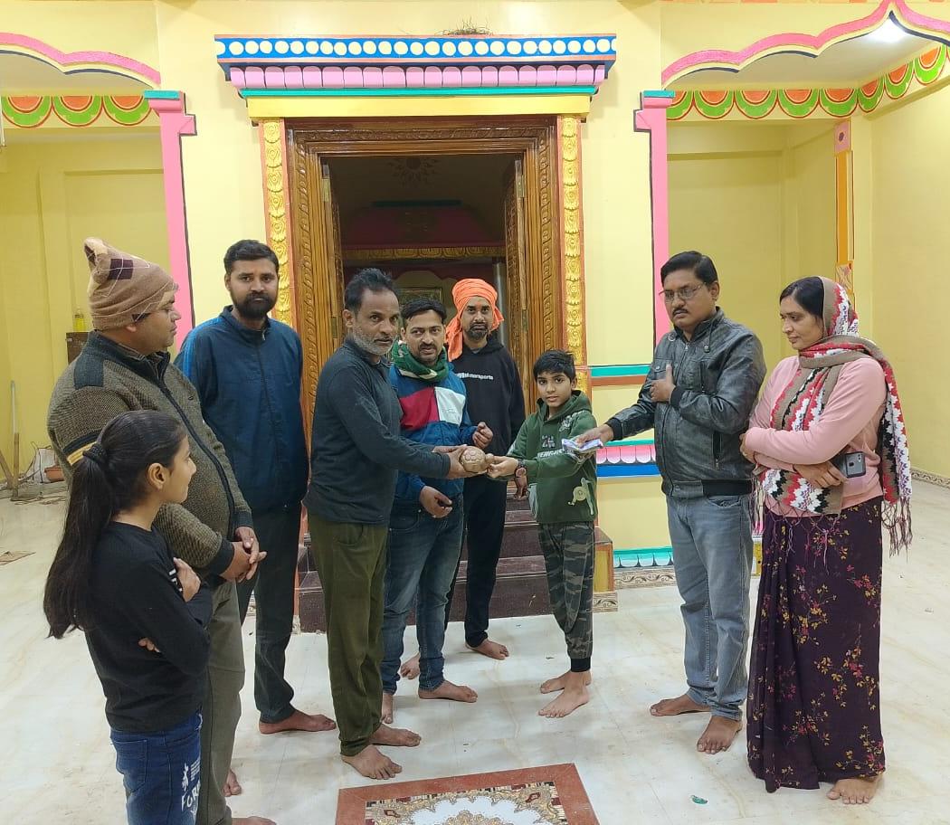 राम दरबार प्राण प्रतिष्ठा हेतु छोटे बच्चे ने अपनी गुल्लक की राशि मंदिर समिति को दान में दी।