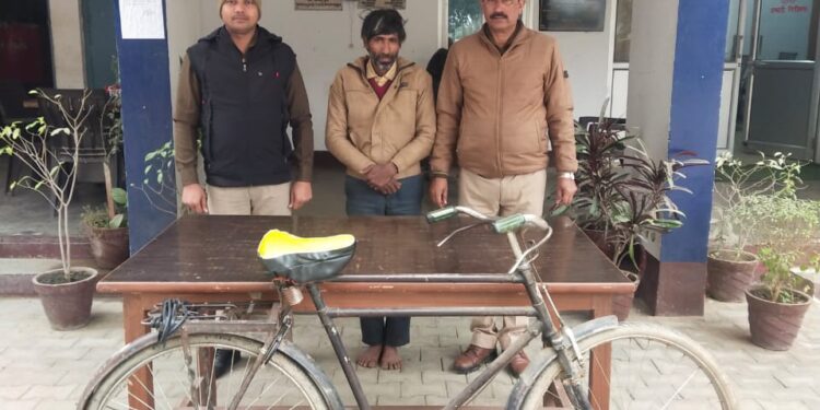 थाना तालग्राम पुलिस द्वारा त्वरित कार्यवाही करते हुये चोरी गयी एक अदद साइकिल को बरामद कर 01 नफर अभियुक्त को गिरफ्तार किया गया*