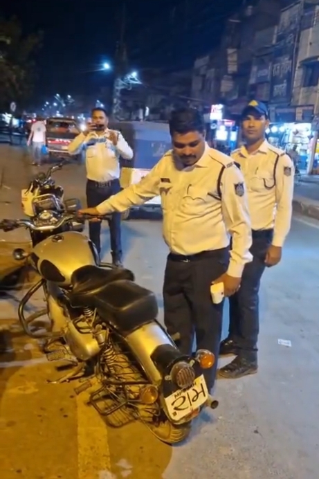 पुलिस अधीक्षक अभिजीत कुमार रंजन के निर्देश पर पटाखों की कर्कश आवाज निकालने वाली बुलेट बाइक पर यातायात पुलिस की कार्रवाई, बुलेट बाइक जब्त