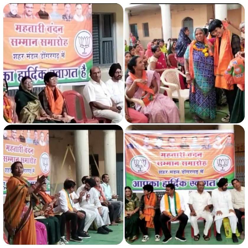 जिसमे भारतीय जनता पार्टी के पूर्व विधायक एवं प्रदेश महामंत्री रामजी भारती , सहकारिता प्रकोष्ठ के संयोजक शशि कांत द्विवेदी, लोकसभा चुनाव के संयोजक सुरेंद्र सिंह बन्नोआना वरिष्ठ भाजपा नेता सुनील जैन ,लक्ष्मी नारायण अग्रवाल , जनपद सदस्य रवि अग्रवालल, डोंगरगढ़ मंडल अध्यक्ष अमित जैन ,डोंगरगढ़ नगर पालिका उपाध्यक्ष व भाजपा सदस्य उमा महेश वर्मा ,लोकसभा प्रबंधन समिति एवं महिला सम्पर्क प्रभारी सुश्री आभा तिवारी ,भाजपा जिला महिला मोर्चा अध्यक्ष किरण साहू , महिला मोर्चा अध्यक्ष सविता दरगड़,मंडल उपाध्यक्ष लक्ष्मी यादव, पार्षद अनीता लोकेश इंदुरकर, जिला मीडिया सहप्रभारी वत्सला श्रीवास्तव, वरिष्ठ भाजपा की सदस्य तारा गोरले, नमिता चौबे, संगीता राजपूत, चंद्रकला राजपूत सुलभा सिंह,व बड़ी संख्या में माता व बहने उपस्थित रही इस दौरान उपस्थित महिलाओं को श्रीफल गमछा देकर उनका सम्मान किया गया ।
