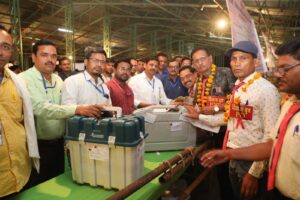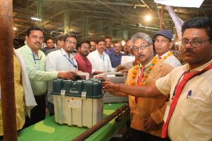कटनी (26 अप्रैल )- संसदीय क्षेत्र खजुराहो हेतु जिले कीं तीन विधानसभा क्षेत्र के लिए 26 अप्रैल शुक्रवार को हुए मतदान को शांतिपूर्ण निर्विघ्न संपन्न कराकर कृषि उपज मंडी पहरूआ पहुंची विधानसभा क्षेत्र . मुड़वारा के मतदान केन्द्र क्रमांक 95 की पोलिंग पार्टी मतदान सामग्री जमा करानें सबसे पहले पहुंची। मतदान केंद्र क्रमांक 95 ,राष्ट्रीय तिलक विद्यालय में दिव्यांग मतदान केंद्र बनाया गया था। यहां तैनात सभी मतदान कर्मी दिव्यांग थे। बावजूद इसके सभी ने अपना काम सबसे पहले निपटा कर मंडी परिसर पहुंचने वाला पहला दल होने का गौरव हासिल किया।यहां कृषि उपज मंडी में सबसे पहले पहुंचने वाले मतदान दल क्रमांक 95के सदस्यों का फूलमाला पहनाकर हार्दिक स्वागत किया गया। सबसे पहले पहुचनें वाले दल के रूप में शाबाशी दी गई।