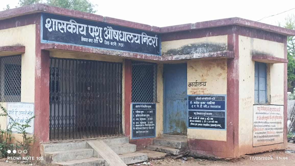 कटनी जिले के रीठी तहसील क्षेत्र के ग्राम पशु चिकित्सा केंद्र निटर्रा में महीनो से ताला लगा हुआ है । यहां के अधिकारी कर्मचारी को इसकी कोई परवाह नहीं है । वह तो घर बैठे ही कागजी कार्रवाई पूर्ण कर लेते हैं ।