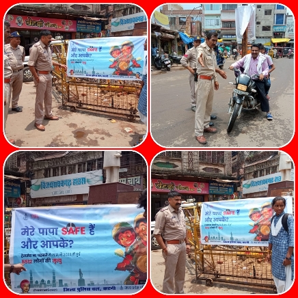 सुभाष चौक के पास बैनर पोस्टर लगाकर उनके बच्चो व स्कूल कालेज मे पढ़ने वाले छात्रों को पढ़वाकर हेलमेट अवश्य पहनने की जागरूकता फाइलाई और पुलिस प्राशासन बेनर पोस्टर मे उल्लेख किया गया है की मेरे पापा सैफ है और आपके? हेलमेट ना पहनने से मध्य प्रदेश मे 2023 मे हुई 5512 लोगो की मृत्यु जिला पुलिस बल,कटनी मध्य प्रदेश पुलिस आपके साथ।