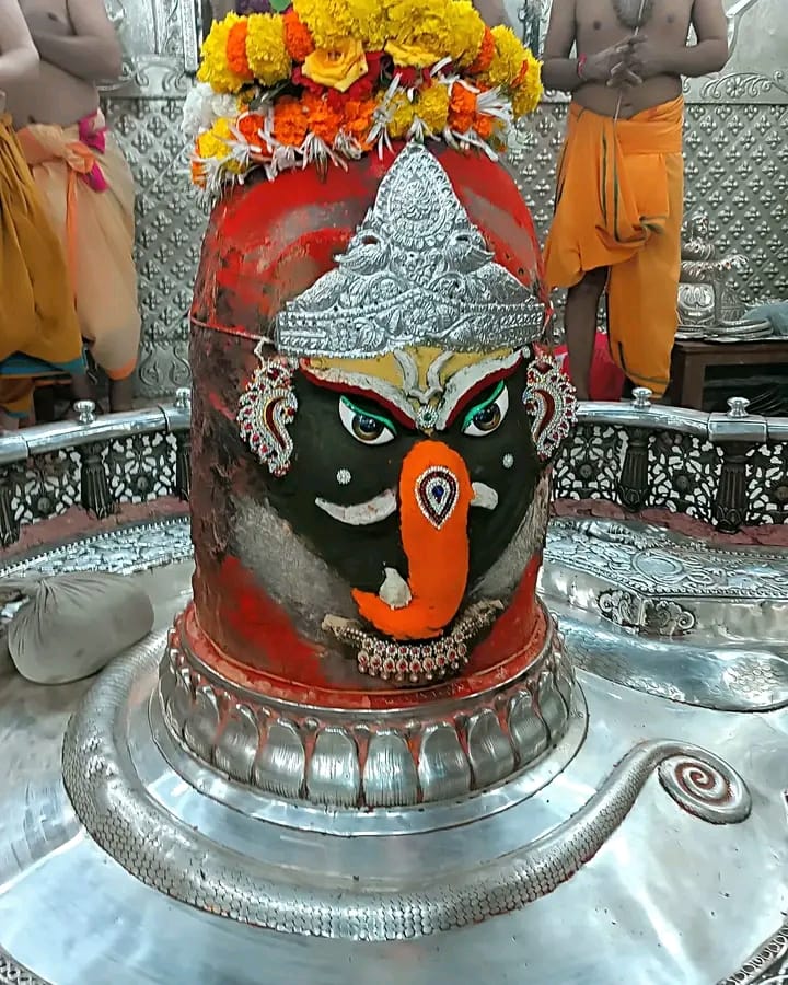 VIDEO भगवान महाकालेश्वर का गणेश रूप में श्रृंगार किया गया। उन्हें राम नाम की चांदी की माला पहनाई गई। महाकाल को भस्म चढ़ाई गई। भगवान महाकाल ने शेषनाग का रजत मुकुट, रजत की मुण्डमाल, रुद्राक्ष की माला के साथ सुगंधित पुष्प से बनी फूलों की माला धारण। फल और मिष्ठान का भोग लगाया।