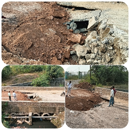 चढ़ा भ्रष्टाचार की भेट, उपस्थित नागरिकों द्वारा जानकारी में बताया कि आज दिनांक 11 नवंबर दोपहर लगभग 12 बजे करीबन एक डम्पर जो मुरुम से लोड TGS रेस्टोरेंट से होते हुए MSW कचड़ा प्लांट की तरफ जा रहा था तभी जैसे ही पुलिया के पास मुरुम से लोड डम्पर पुलिया क्रॉस कर रहा था