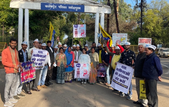 नर्मदापुरम। आम आदमी पार्टी ने जिला अध्यक्ष राजेंद्र मालवीय के नेतृत्व में धार्मिक नगरी नर्मदापुरम में बिक रही अवैध शराब और माफियाओं पर कार्यवाही करने एवं अवैध शराब की विक्री पर रोक लगाने राष्ट्रपति एवं राज्यपाल के नाम कलेक्टर के माध्यम से बुधवार को आप कार्यकर्ताओं द्वारा ज्ञापन सौंपा गया है। इस अवसर पर आप आरटीआई विंग जिलाध्यक्ष सीताशरण पांडे ने बताया कि धार्मिक नगरी नर्मदापुरम में शराब माफियाओं का बोल बाला है।नगर में हर गली मोहल्ले नुक्कड़ चौंको पर खुलेआम शराब बेची जा रही है। शराब माफियाओं को सीधा संरक्षण दिया जा रहा है। पुलिस और आबकारी विभाग आंख पर पट्टी बांधकर मौन धारण किए हुए है। भाजपा के सुशासन काल में पूर्व मुखमंत्री द्वारा माँ नर्मदा की गोद में बैठकर नर्मदा जयंती पर घोषणा की गई थी कि धार्मिक नगरी नर्मदापुरम शहर से 5 किलोमीटर तक शराब दुकानें नहीं खुलेगी और शहर में किसी भी प्रकार से शराब विक्री पर रोक रहेगी परंतु आज परिस्थिति उलट है। शहर में हर जगह शराब परोसी जा रही है, घर पहुंच सेवा चल रही है।शराब माफिया पुलिस और प्रशासन पर हावी है। सत्ताधारी नेता माफियाओं पर कार्यवाही करने का दिखाबा कर जनता को गुमराह कर रहे है। इसलिए आम आदमी पार्टी नर्मदापुरम द्वारा शहर से अवैध शराब माफियाओं पर कार्यवाही करने की मांग को लेकर सड़क पर उतरी है एवं सरकार को अवगत कराने का काम कर रही है। ज्ञापन में जिलाध्यक्ष लीगल विंग एड. प्रदीप मालवीय, जिला सोशल मीडिया प्रभारी सुनील कहार , एसटी विंग जिलाध्यक्ष रितेश कलीसिया, यूथ विंग जिलाध्यक्ष मयूर पटेल, जिला उपाध्यक्ष आरएन गुप्ता, जिला संयुक्त सचिव कासिम अली, धनीराम गौर, अमन चतुर्वेदी, जेएस तिवारी,कमलेश कुमार गढ़वाल, सुमेर सिंह प्रजापति, पूरनलाल यादव,दीपक गोस्वामी, अमोद ठाकुर,सचिन ठाकुर, प्रेम मोर्या,अशोक लोखंडे, राजा विक्रम, दिलीप ठोके, रमेश वनोरिया,अभय राम दामड़े, आकाश चंद्रवंशी, अर्जुन सिंह, विवेक शर्मा, कुणाल, जीतू यादव संजय जैन,एड चक्रेश दूबे, देवेंद्र यादव,मनोहर सिंह,जय यादव , कृष्ण गोपाल मिश्रा, मुकेश मंडारे, सौरभ मालवीय, विशाल शुक्ला, रघुनाथ नामदेव, दीपक गुप्ता, तारा सिंह राजपूत, यशमीन, राशिया, मोनिका, कमला, शारदा,निक्की पटवा सहित बड़ी संख्या में कार्यकर्ता उपस्थित रहे।