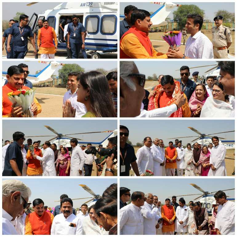 नर्मदापुरम। प्रदेश के मुख्यमंत्री डॉ मोहन यादव का रविवार को नर्मदापुरम जिले में आगमन हुआ। मुख्यमंत्री डॉक्टर यादव का स्थानीय हेलीपैड पर सांसद श्री दर्शन सिंह चौधरी, नर्मदापुरम विधायक डॉक्टर सीतासरन शर्मा, पिपरिया विधायक ठाकुरदास नागवंशी,सोहागपुर विधायक विजयपाल सिंह , सिवनी मालवा विधायक प्रेम शंकर वर्मा ,नगर पालिका नर्मदापुरम की अध्यक्ष श्रीमती नीतू महेंद्र यादव , श्रीमती प्रीति पवन शुक्ला ने आत्मीय स्वागत किया।