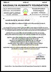 कौशल्या ह्यूमैनिटी फाऊंडेशन की संस्थापक अध्यक्ष अर्चना सिंगरौल ने प्रधानमंत्री नरेंद्र मोदी को लिखा पत्र