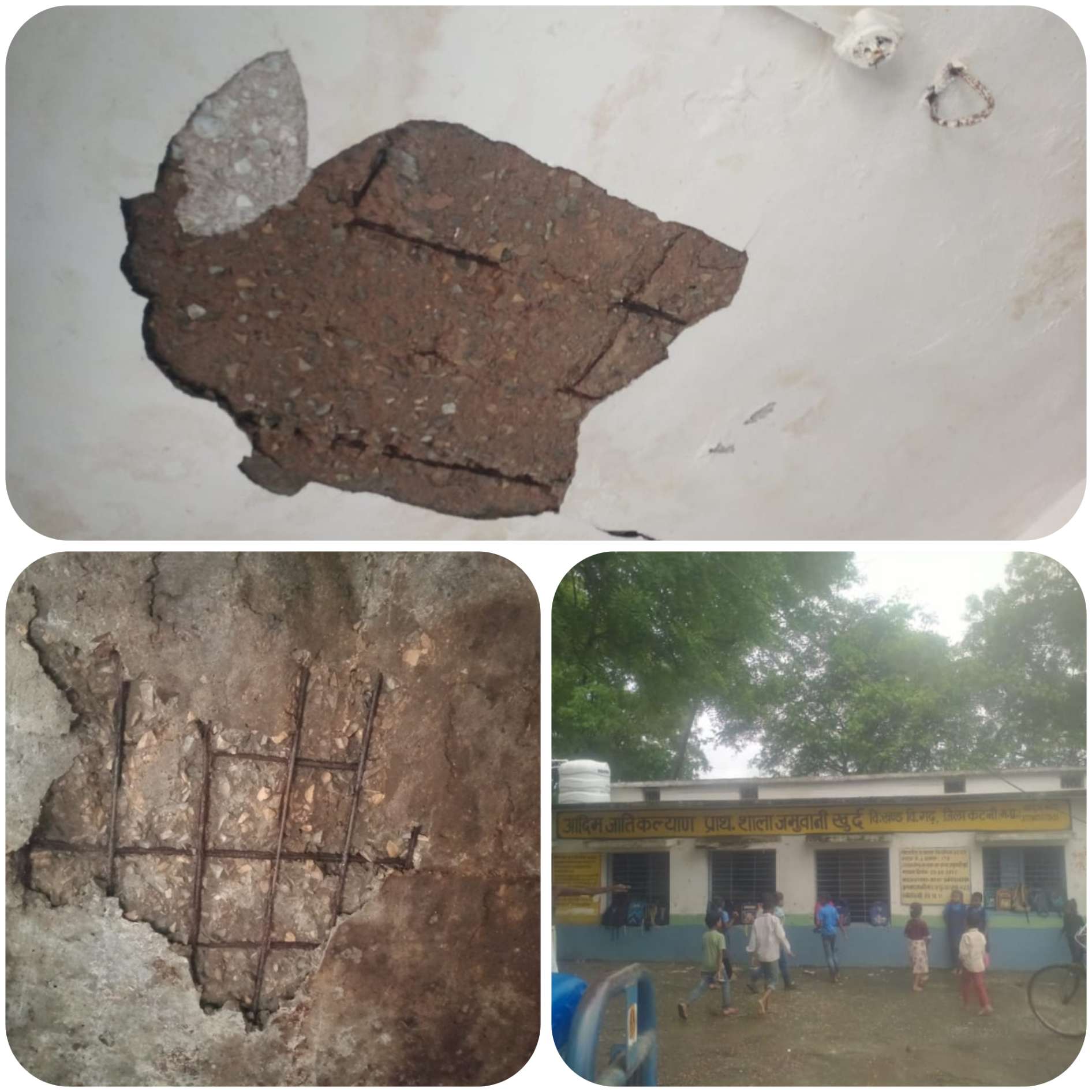 विद्यालय की हालत देख मासूम बच्चे भी अंदर बैठने से घबरा बैठे बारिश होने पर विद्यालय के बाहर आकर बारिश बंद होने का कर रहे इंतजार व विद्यालय समीप रहवासियों द्वारा बताया गया कि अगर यह बच्चे अंदर बैठ कर अध्ययन करते है या फिर बारिश रुकने का इंतजार करते है तो इन छोटे छोटे मासूम बच्चों के ऊपर इस जर्जर विद्यालय के अंदर बच्चों की जान पर खतरा मंडराता हुआ नजर आ रहा है अगर अंदर बैठ कर अध्ययन करे तो ऊपर से छत गिरने डर के चलते मासूम बच्चे बाहर खड़े होकर बारिश में दीवाल के किनारे खड़े होकर भीगते हुए बारिश रुकने का इंतजार करने को है मजबूर।