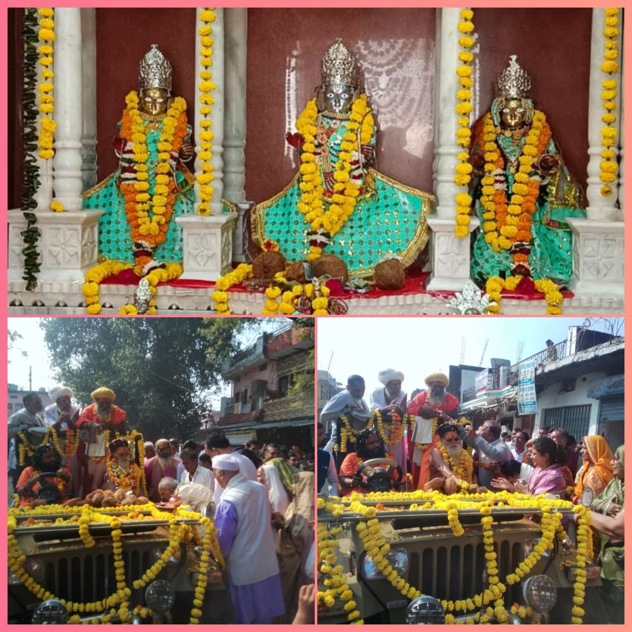 अनेक परिवारों ने उनका अपने अपने घरों के सामने स्वागत किया । श्री मंगल पीठाधीश्वर श्री श्री माधवचार्य जी महाराज अपने प्रवचन में भक्त को अपनी जमा पूंजी में से सामाजिक कार्यों मंदिर निर्माण में दान करने के महत्व को बताया है ।