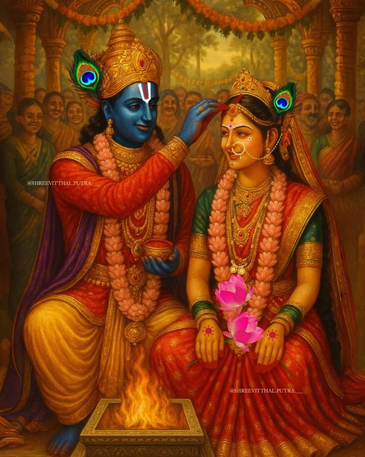 उन्होंने श्रीकृष्ण को अपना पति मान लिया, लेकिन उनके भाई रुक्मिणी का विवाह शिशुपाल से करना चाहते थे। इसलिए, रुक्मिणी ने भगवान् श्रीकृष्ण को एक प्रेम पत्र लिखा और इसमें रुक्मिणी ने श्रीकृष्ण को अपना पति बनाने की प्रार्थना की और