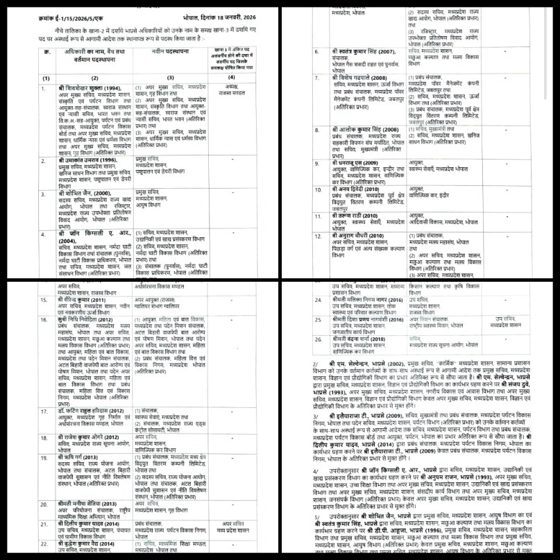 इसी आदेश के तहत राज्य सरकार ने 26 आईएएस अधिकारियों के तबादले भी किए हैं। सामान्य प्रशासन विभाग द्वारा जारी सूची में कई जिलों के कलेक्टर, निगम आयुक्त और विभागीय प्रमुख शामिल हैं।