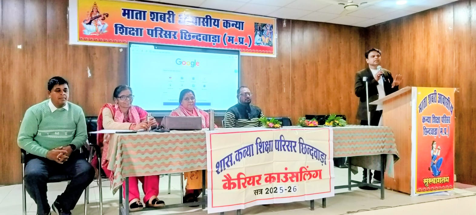छिन्दवाड़ा/30 जनवरी 2026/ माता शबरी आवासीय कन्या शिक्षा परिसर छिंदवाड़ा में गत दिवस केरियर सप्ताह के अन्तर्गत सहायक आयुक्त जनजातीय कार्य विभाग श्री सतेन्द्र सिंह मरकाम की प्रेरणा एवं प्राचार्य श्री वसंत कुमार सनोडिया के मार्गदर्शन में विषय विशेषज्ञ सहायक प्रध्यापक स्वशासी स्नातकोत्तर महाविद्यालय छिंदवाड़ा श्री महेन्द्र साहू द्वारा शाला में अध्ययनरत कक्षा 9वीं से 12वीं तक की छात्राओं को केरियर के अन्तर्गत विभिन्न प्रतियोगी परीक्षा जैसे यूपीएससी, एमपीपीएससी, एसएससी, रेलवे, बैंक आदि की जानकारी विस्तृत रूप से व्याख्यान द्वारा दी गई। साथ ही जीवन कौशल मूल्यों पर प्रकाश डालते हुये रोचक तरीके से अवधारणाओं पर समझ विकसित करने के लिये प्रेरित किया। कार्यकम का मंच संचालन व्याख्याता डॉ.श्रीमती दिव्यनिधी पांडे एवं आभार प्रदर्शन व्याख्याता श्रीमती अनिता जोशी द्वारा किया गया। यह कार्यकम (बालिका संरक्षण समिति प्रभारी) व्याख्याता श्रीमती गीता सर्वनन एवं समस्त स्टॉफ की उपस्थिति में सपन्न हुआ।