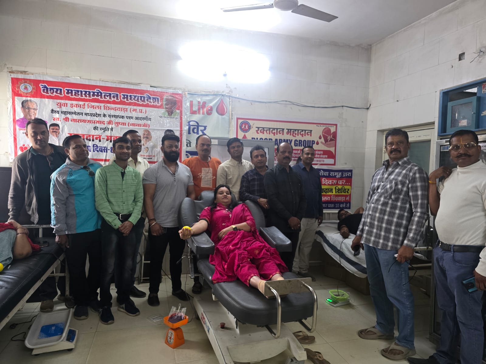 छिंदवाड़ा । वैश्य महासम्मेलन की युवा इकाई के तत्वावधान में स्थानीय शासकीय अस्पताल के सहयोग से विशाल रक्तदान शिविर का आयोजन किया गया । वैश्य महासम्मेलन की जिला युवा इकाई के अध्यक्ष विशाल माहेश्वरी ने बताया कि प्रति वर्ष 8 फ़रवरी को मध्यप्रदेश में वैश्य महासम्मेलन के संस्थापक श्रद्धेय श्री नारायण प्रसाद जी गुप्ता नानाजी की पुण्य स्मृति में रक्तदान शिविर का आयोजन किया जाता है । मानव सेवा के इस पुनीत कार्य में सदस्यों के साथ साथ समाज के सभी वर्गों का सहयोग मिलता है । आज के शिविर में जिला इकाई अध्यक्ष अनिल सिंघई, संभागीय अध्यक्ष नीरज भारद्वाज, जिला संगठन महामंत्री नितिन जैन, युवा इकाई के संभागीय प्रभारी धर्मेंद्र साहू, संभागीय अध्यक्ष शैलेन्द्र जैन, जिला प्रभारी विकास वात्सल्य, ज़िलाध्यक्ष विशाल माहेश्वरी, मनमोहन चांडक, कुंज राठी, अजय पिंटू चौरसिया, नितेश जैन, मयंक नेमा, अंकेश साहू,