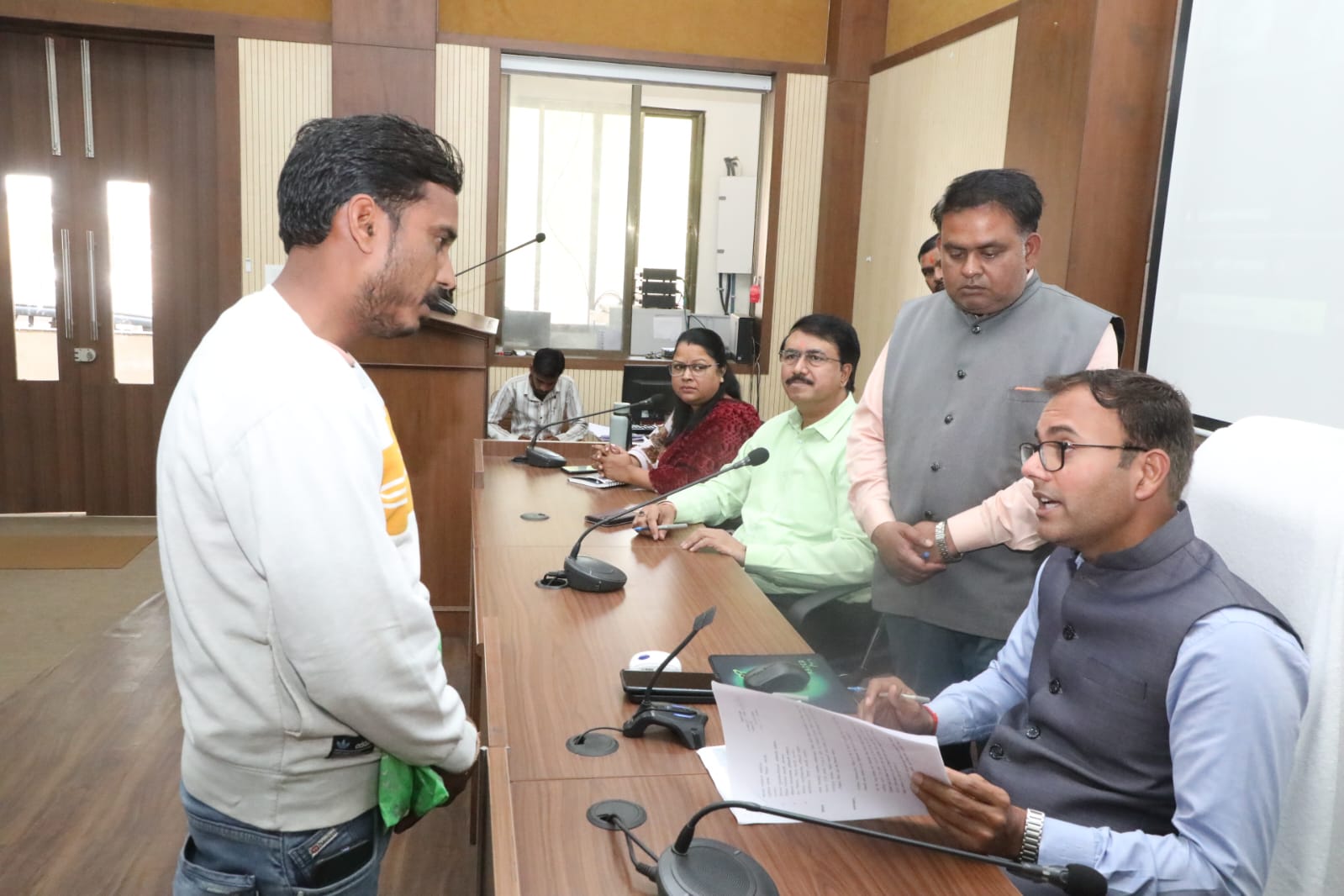 जनसुनवाई के दौरान विजयराघवगढ़ निवासी मनीराज शुक्ला ने कलेक्टर श्री तिवारी को अपनी शिकायत में बताया कि मैनें 2 अगस्त 2025 को जमीन का नामांतरण करवाने के लिए तहसील कार्यालय में आवदेन किया था। परंतु अभी तक मेरा नामांतरण नहीं हो सका है। इस पर कलेक्टर श्री तिवारी ने विजयराघवगढ़ तहसीलदार को मनीराज शुक्ला के जमीन का नामांतरण करवाने के निर्देश दिए।