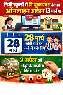 निजी स्कूलों में निःशुल्क प्रवेश के लिए ऑनलाइन आवेदन 13 मार्च से 28 मार्च रहेगी आवेदन करने की अंतिम तिथि, 2 अप्रैल को लॉटरी के माध्यम से मिलेगा प्रवेश
