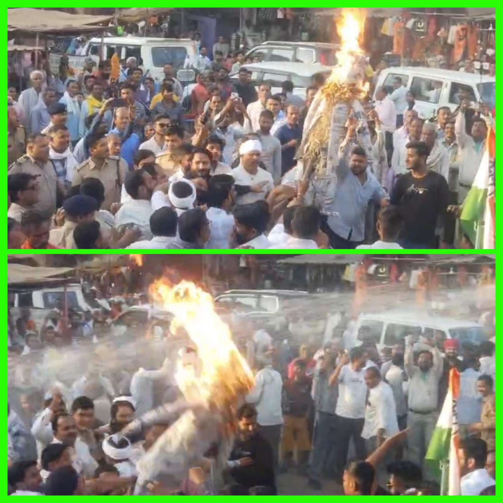 VIDEO धान भुगतान की मांग को लेकर मझौली में विधायक पर वादा खिलाफी का आरोप, कांग्रेस ने किया पुतला दहन