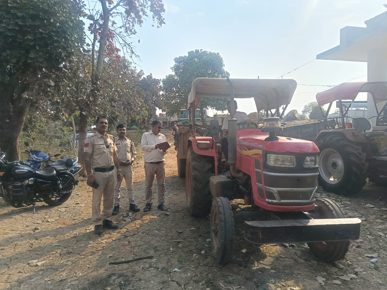 जप्तशुदा ट्रैक्टर-ट्राली को सुरक्षार्थ चौकी परिसर में खड़ा कराया गया है तथा आरोपी के विरुद्ध धारा 106 बी.एन.एस. एस. के तहत वैधानिक कार्यवाही की गई है।