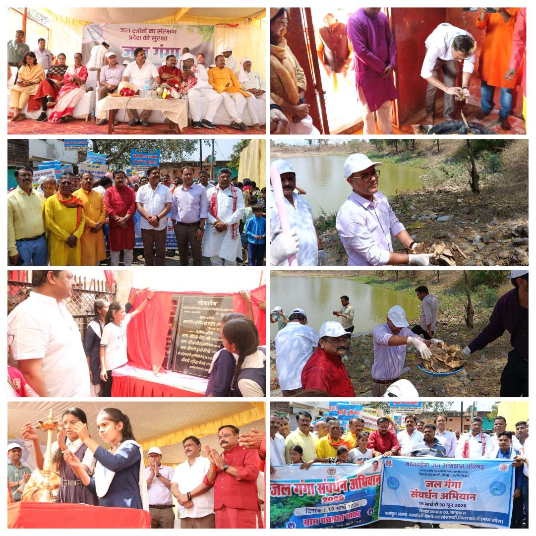 कटनी (19 मार्च)- जल गंगा संवर्धन अभियान के तहत गुरूवार को ग्राम पंचायत चाका के  बड़ा तालाब में ग्रामीणों और समाज के साथ-साथ विधायक, जिला पंचायत अध्‍यक्ष, कलेक्टर, जिला पंचायत सीईओ व निगमायुक्‍त ने बड़ा तालाब में साफ सफाई के कार्य में श्रमदान किया। इस प्रकार जिले में तीसरे जिला स्‍तरीय जल गंगा सवर्धन अभियान का भव्‍य आयोजन हुआ। इस दौरान जल कलश यात्रा और जागरूकता रैली भी निकाली गई।